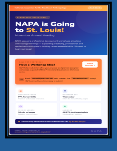 NAPA promotes human-centered work applied to practical problems by linking a network of professional anthropologists working across employment sectors. We support all anthropologists in bringing real solutions to communities, organizations, and policymakers, by offering advocacy, information, networks, mentoring, and continuing education.
